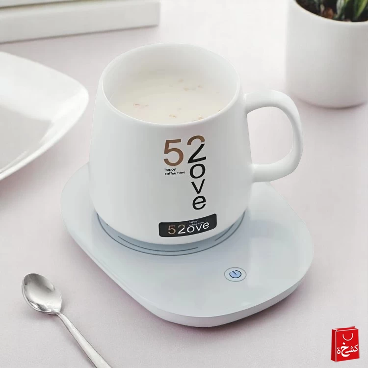 حافظ على مشروبك ساخنًا في كل الأوقات مع طقم سخان الكوب الذكي! يتضمن كوبًا من السيراميك، وملعقة، ولوحة تسخين – مثالي للاستخدام في المنزل أو المكتب.