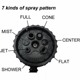 • 🔫 رأس رشّ بـ7 أوضاع مرفق – دش، نفاث، رذاذ، ممتلئ، مخروطي، مركزي، مسطح
