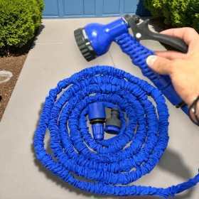 6️⃣ عند الانتهاء، أغلق الماء – سيعود الخرطوم إلى حجمه الصغير لتخزينه بسهولة
