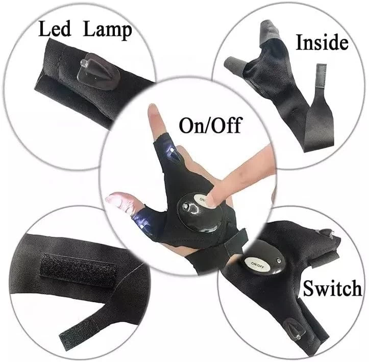 • 💡 إضاءة LED فائقة السطوع – مصباحان صغيران على الإبهام والسبابة بإضاءة تصل إلى 50 لومن