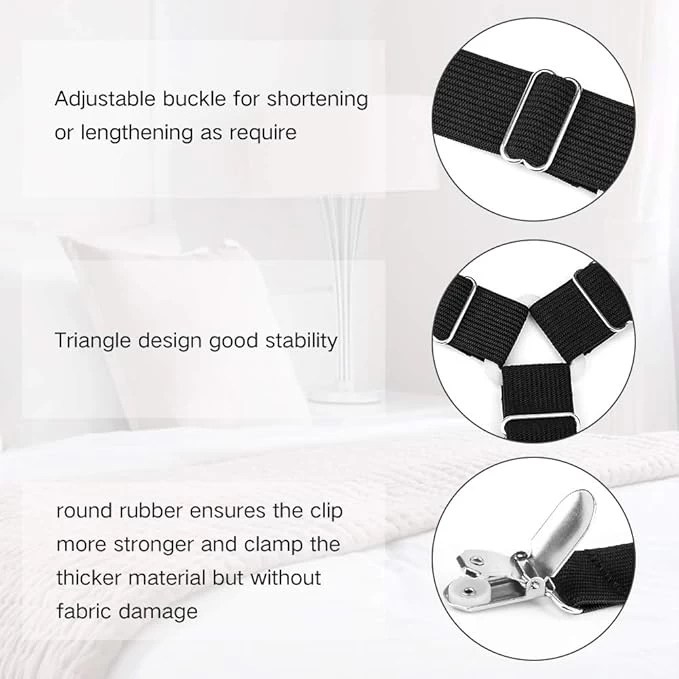 🛏️ أربطة تثبيت ملاءة السرير القابلة للتعديل – 4 قطع