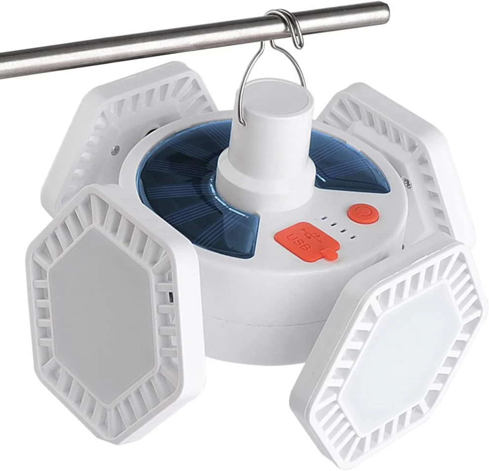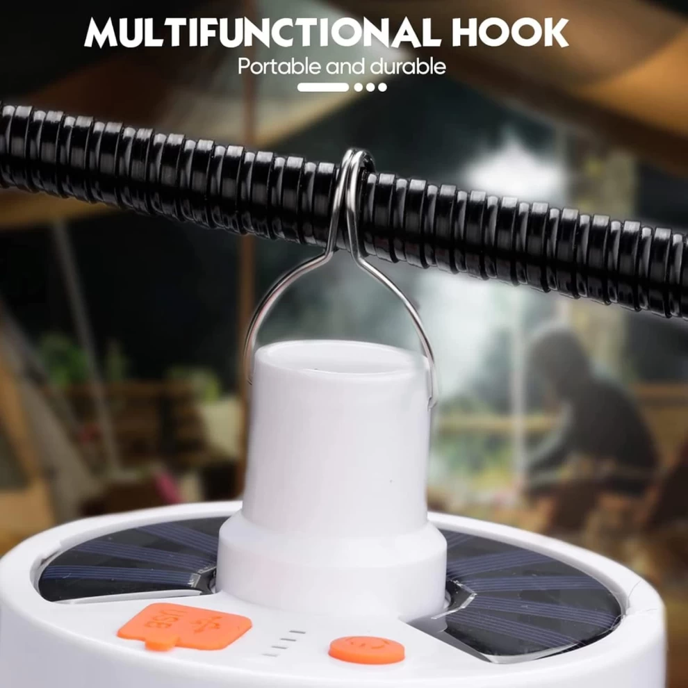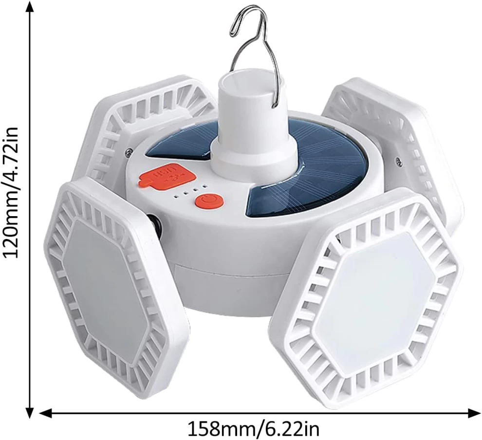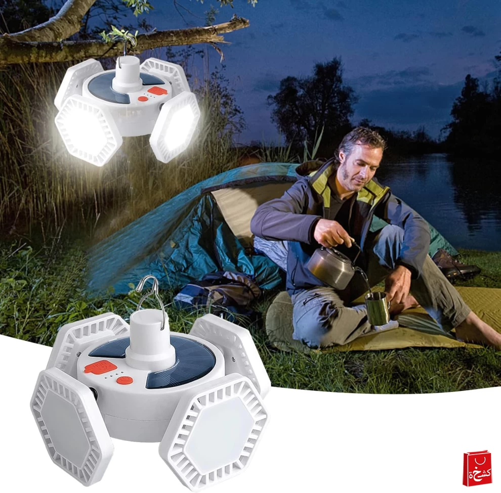🏕🌞 فانوس تخييم يعمل بالطاقة الشمسية – قابل للشحن USB – بطارية 2400mAh – مقاوم للماء IP44