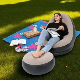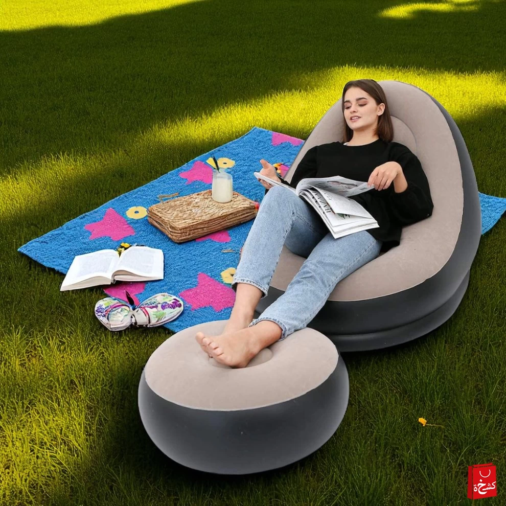 🛋️ كرسي استرخاء هوائي مع مسند للقدم – مريح، عملي، وسهل الحمل (قابل للنفخ)