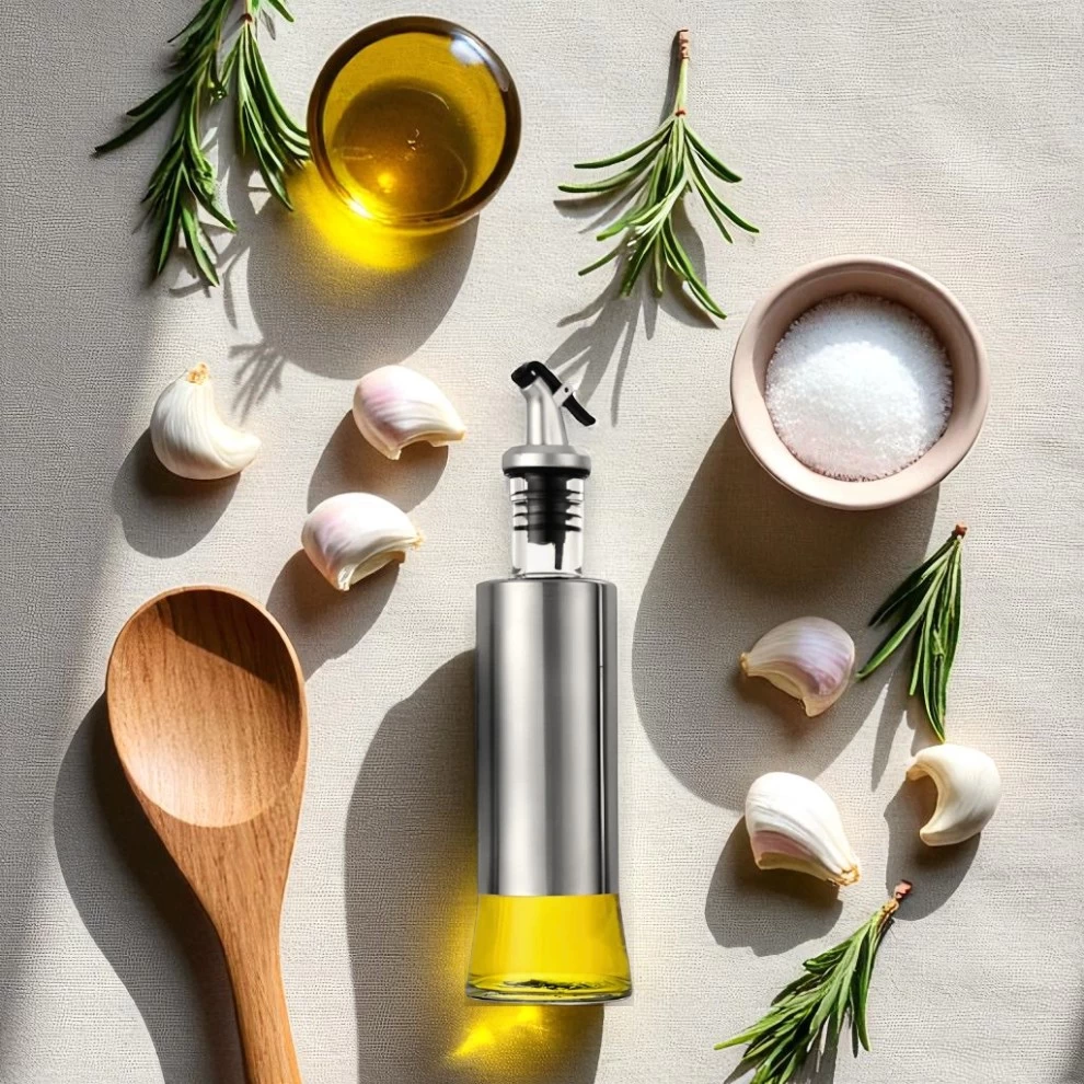 زجاجة الزيت الزجاجية هذه مصممة لمساعدتك على التحكم في الكمية المستخدمة بدقة دون إهدار، مع الحفاظ على نكهة الطعام. مثالية لتتبيل السلطات، الشوي، أو الطهي اليومي، وتوفر سكبًا نظيفًا وسلسًا في كل مرة. مصنوعة بالكامل من زجاج عالي الجودة مقاوم للحرارة، مع غطاء أنيق من الستانلس ستيل وفتحة سكب دقيقة، وآمنة بفضل مواد خالية من BPA.