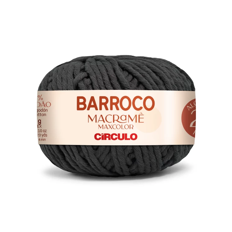 Circulo's Barroco Macramé is a single-ply, 4mm, soft and plush string made with 100% Brazilian virgin cotton intended for knotting, knitting, crochet, weaving and other fibre art projects.