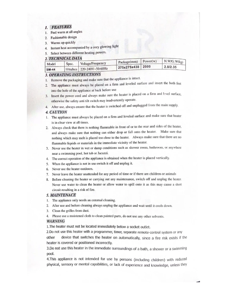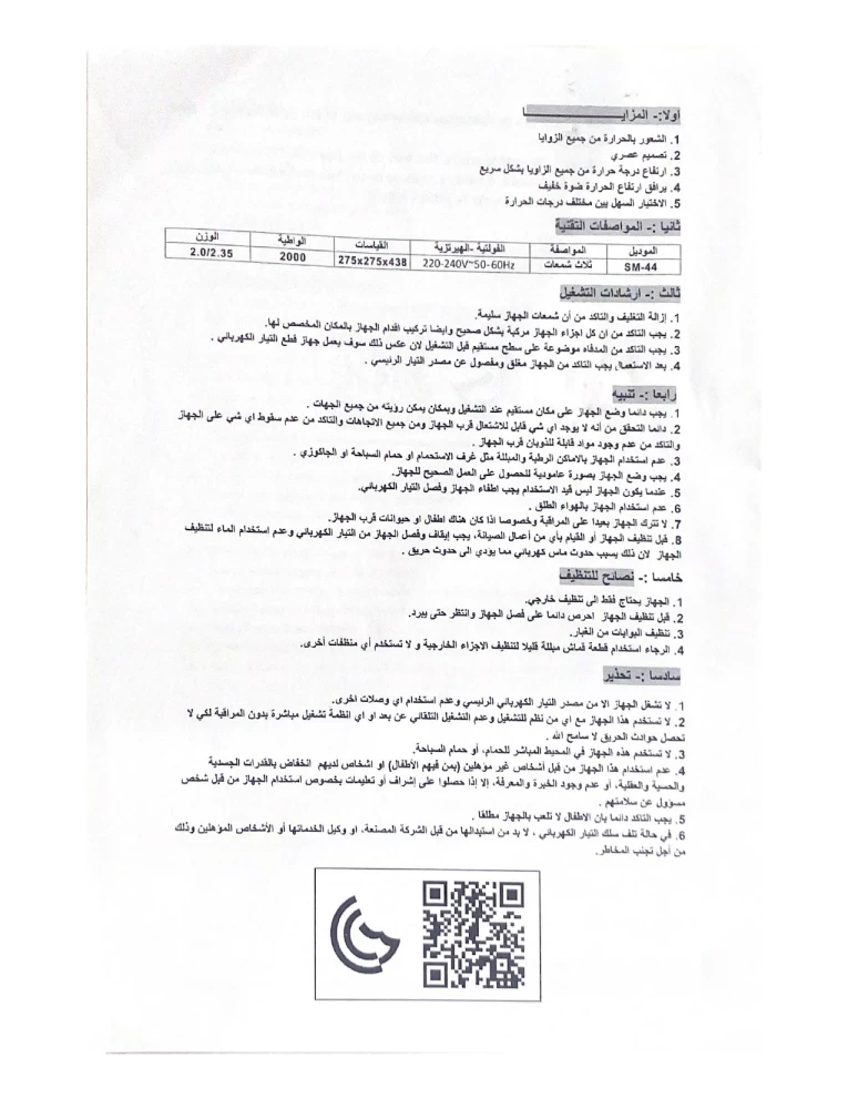 🔥 سومو دفاية كوارتز SM-44 – قدرة 800 واط | تدفئة سريعة وفعّالة