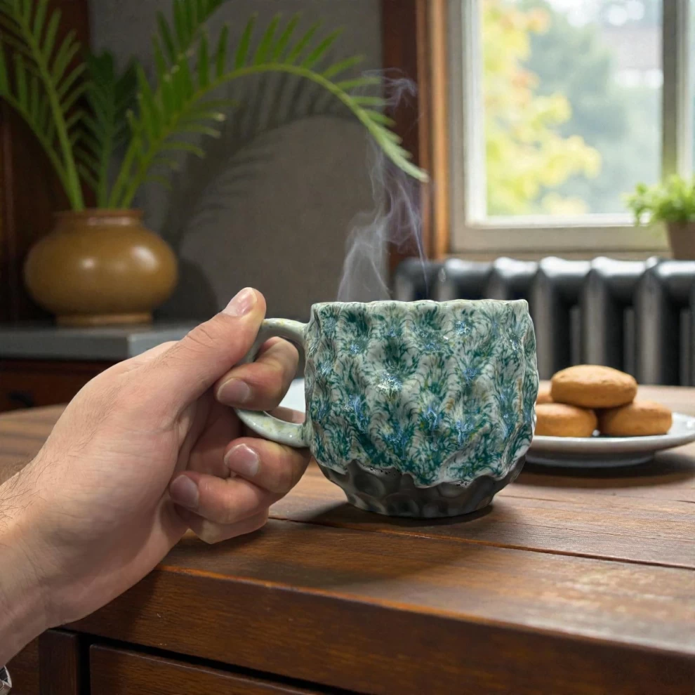 • المقبض ذو الشكل يمكن أن يمنعه من الدوران عندما تحاول حمل الكوب، مما يساعدك على الاستمتاع بالشاي/القهوة بشكل مريح
