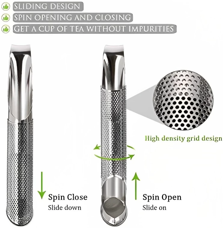 استمتع بكوب شاي مثالي في كل مرة مع مصفاة الشاي الأنيقة المصنوعة من الستانلس ستيل المقاوم للصدأ 🫖🍵. تتميز بتصميم أنبوبي عصري وشبكة دقيقة تمنع تسرب أوراق الشاي، مع الحفاظ على نكهة غنية ولذيذة 🍃✨. خيار مثالي لمحبي الشاي الطبيعي ♻️💚