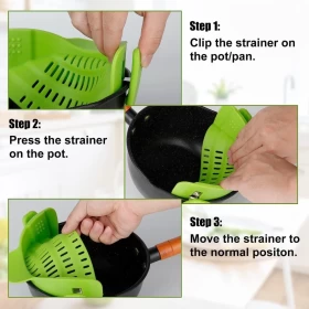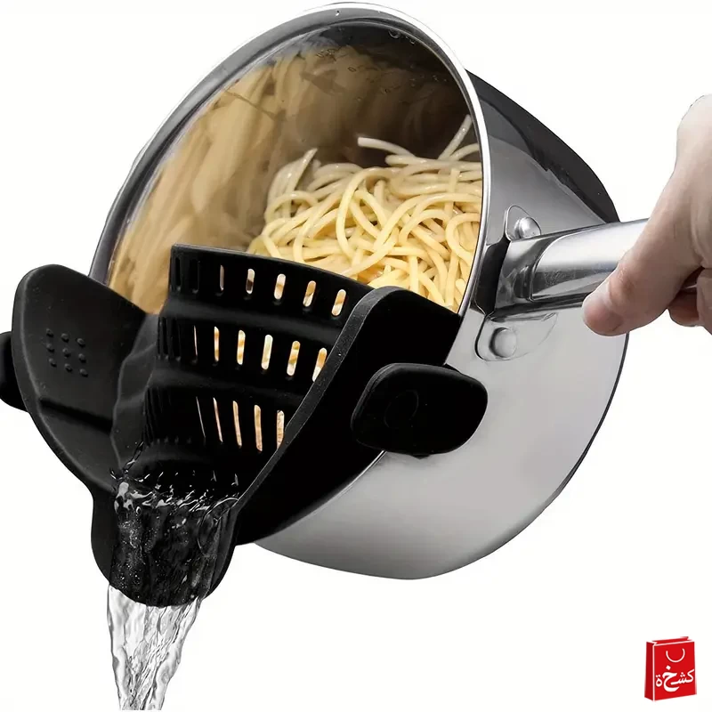 مصفاة سيليكون ذكية: تقضي على عملية النقل. يمكن إمالة الطعام للتصفية بينما يبقى الطعام في الوعاء.