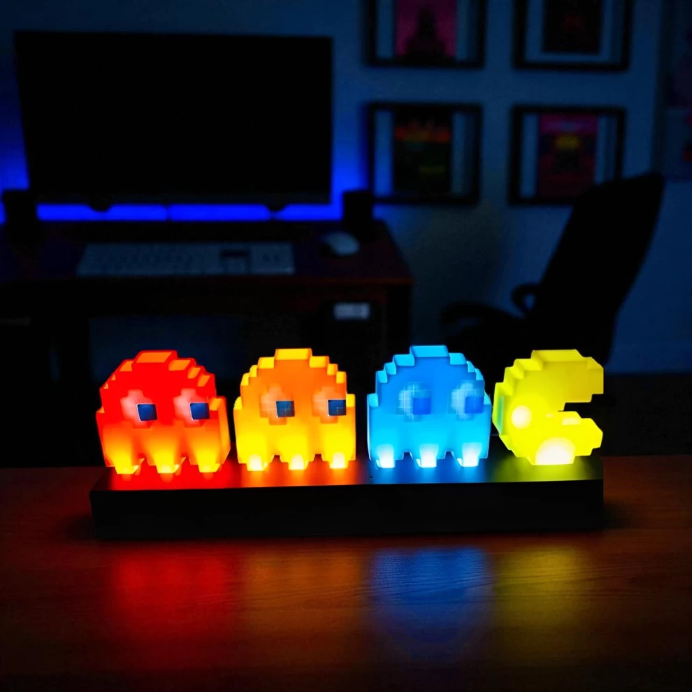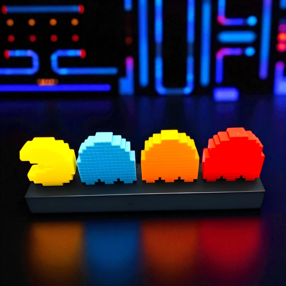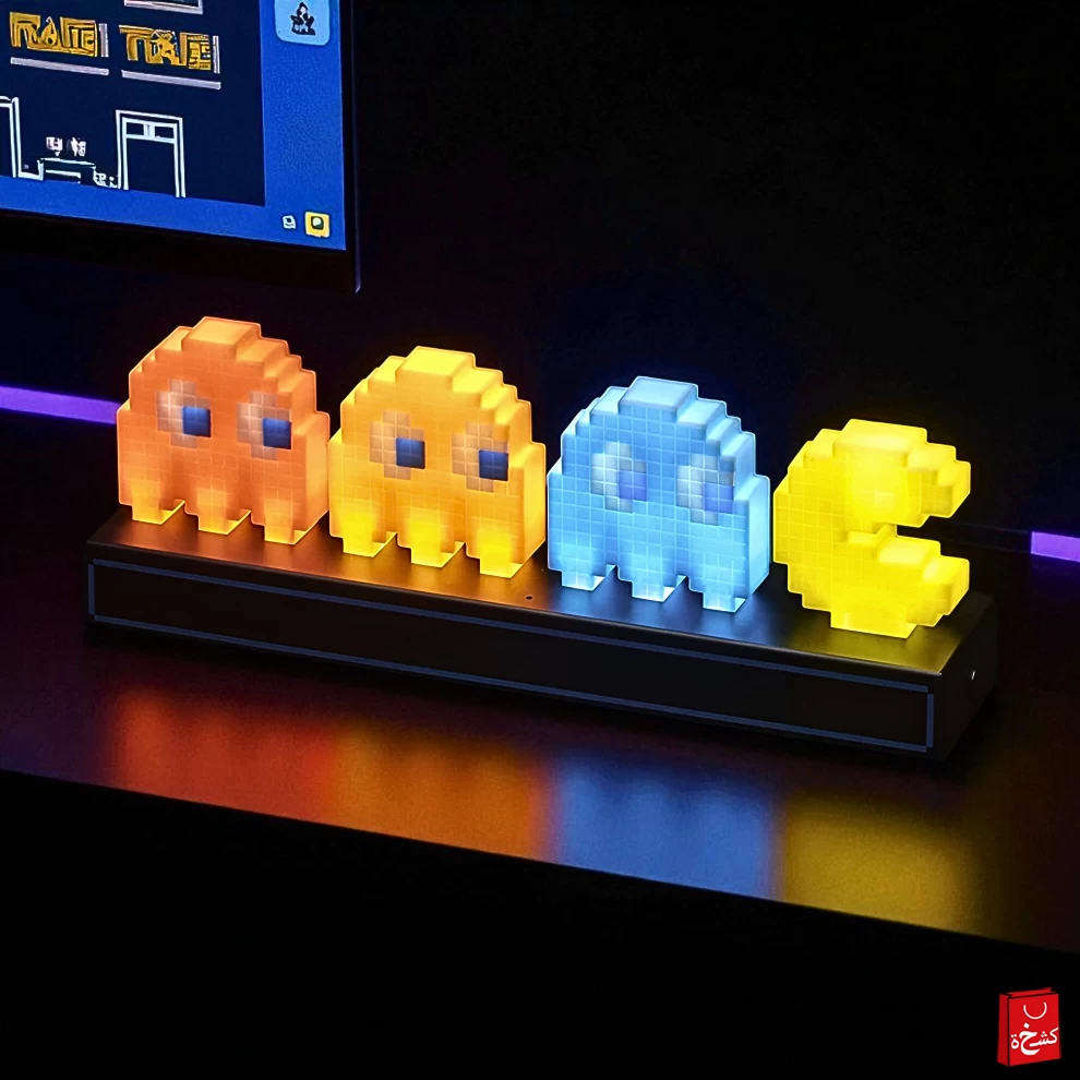 أضف لمسة من الحنين وروح الألعاب الكلاسيكية إلى غرفتك مع مصباح Pac-Man Retro Icon Light! تحفة فنية مضيئة مستوحاة من لعبة الأركيد الشهيرة في الثمانينات، تضم الشخÅصيات الأيقونية مثل Inky وBlinky وPinky وClyde المضيئة بألوان LED زاهية! مثالي لغرف الأطفال، عشاق الألعاب، أو كديكور عصري مميز.
