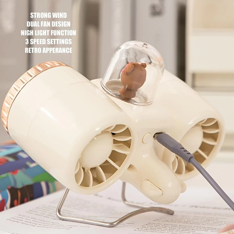 مروحة ثنائية للمكتب قابل للشحن مع رذاذ الماء