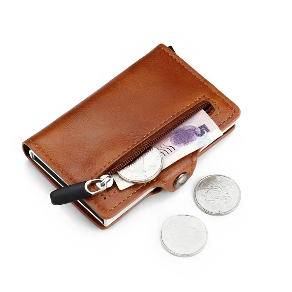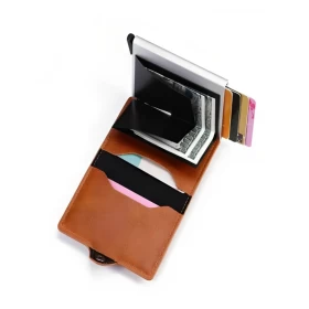 احفظ بطاقاتك الائتمانية بأمان وأناقة! تأتي هذه المحفظة بتصميم مدمج وعصري، تحتوي على قسم معدني يتّسع لـ 6 بطاقات بتقنية RFID لمنع السرقة الإلكترونية، بالإضافة إلى فتحات إضافية للهوية أو رخصة القيادة وبعض النقود. تصميم أنيق ومناسب للرجال والنساء.