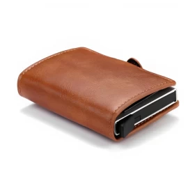 محفظة جلدية للرجال حاملة بطاقات الجيب - بني