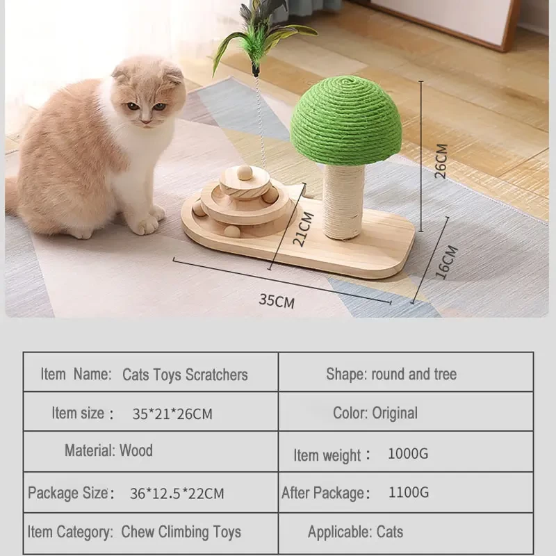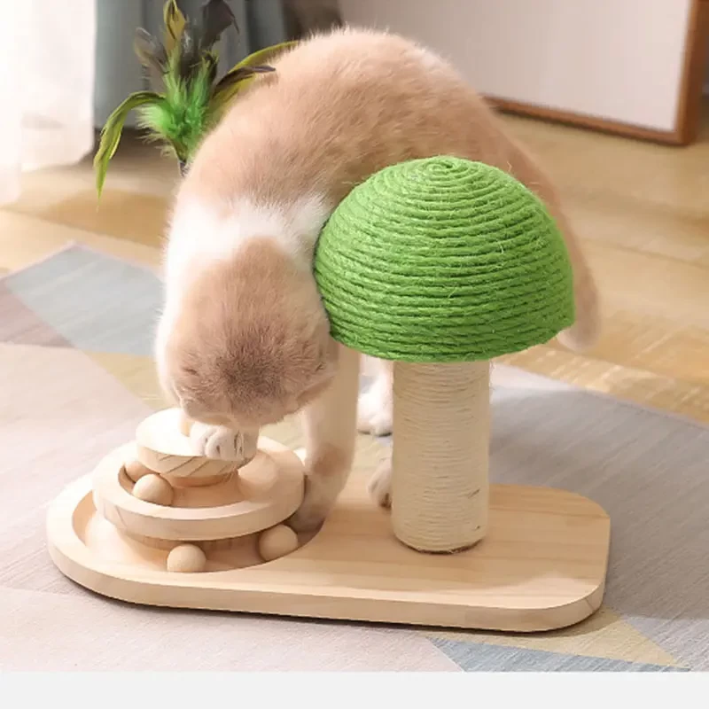 خداشة ولعبة للقطط على شكل فطر مصنوعة من خشب الصنوبر الصلب وألياف السيزال السميكة وتعتبر هذه المواد صديقة للبيئة ومناسبة لصحة القطط.