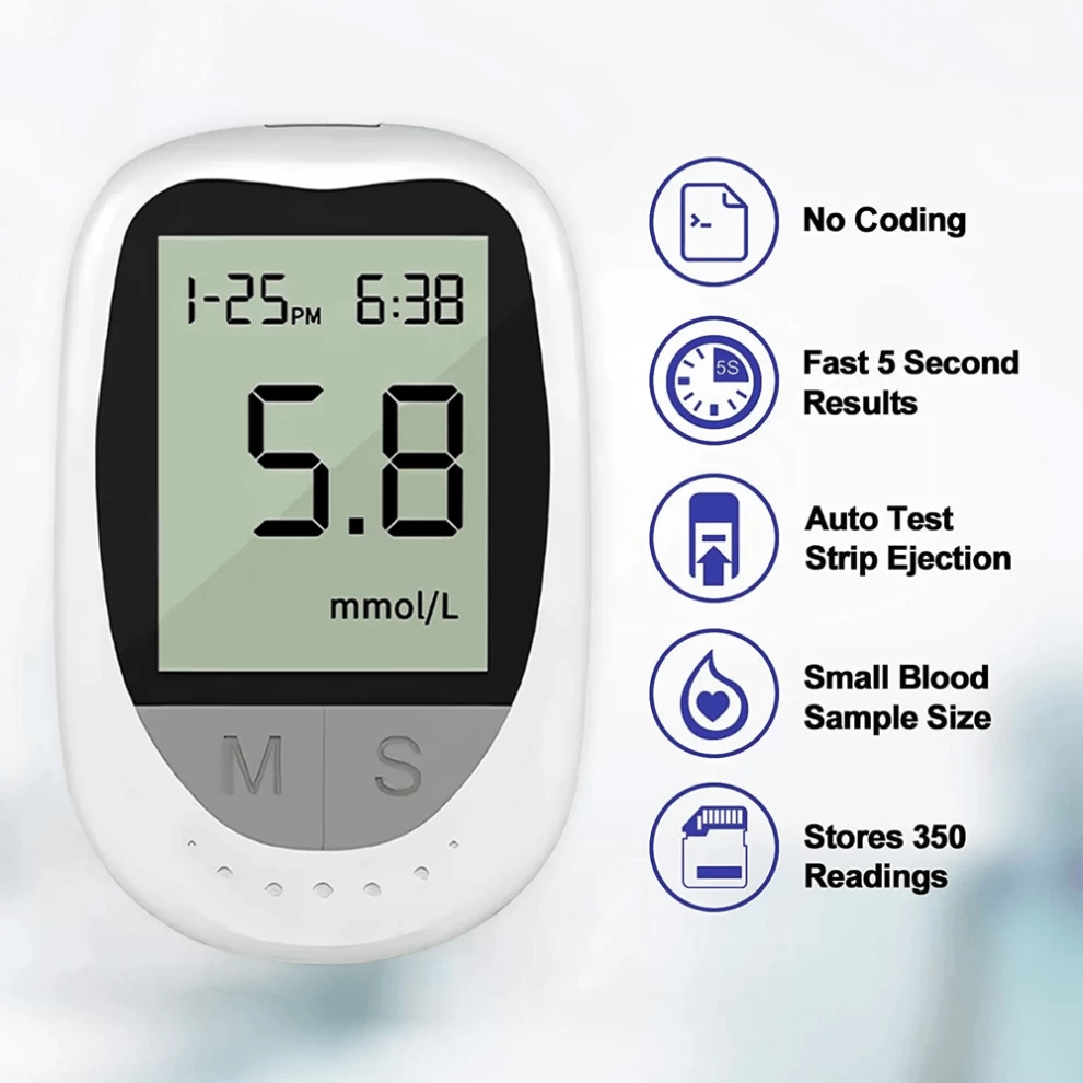 • الجهاز: جهاز رقمي أزرق لقياس السكر