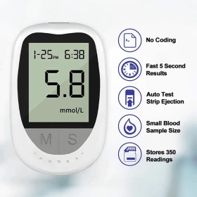 قم بقياس مستوى السكر بسهولة مع طقم جهاز قياس الجلوكوز المصمم لقراءات سريعة وبسيطة ومريحة. يحتوي الطقم على كل ما تحتاجه للفحص اليومي في المنزل.