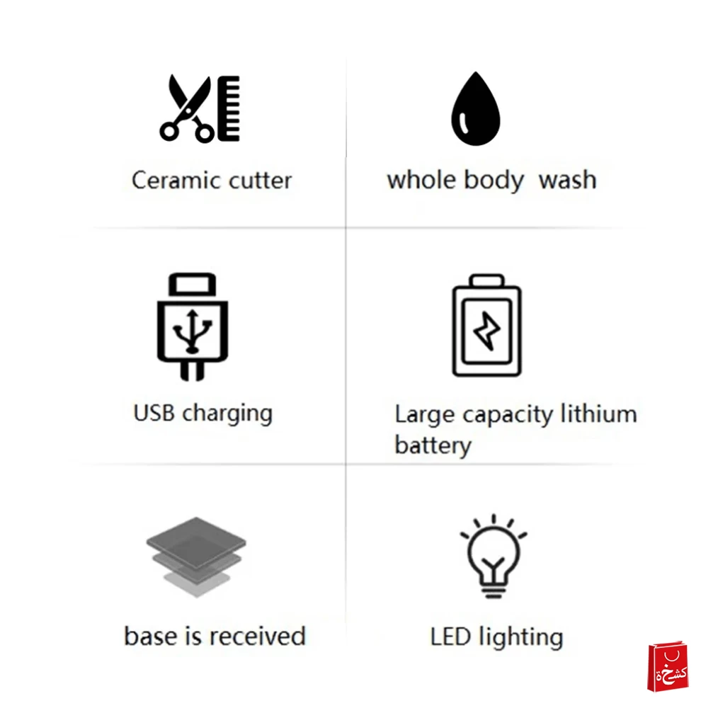 إضاءة LED مدمجة – تساعد في تحديد الشعيرات الدقيقة للحلاقة بدقة حتى في الإضاءة المنخفضة.