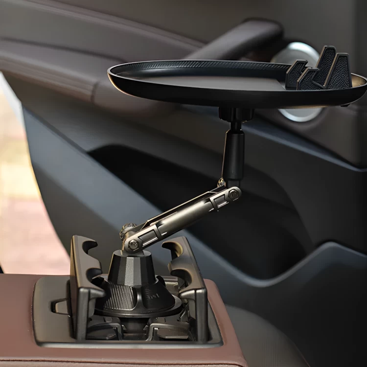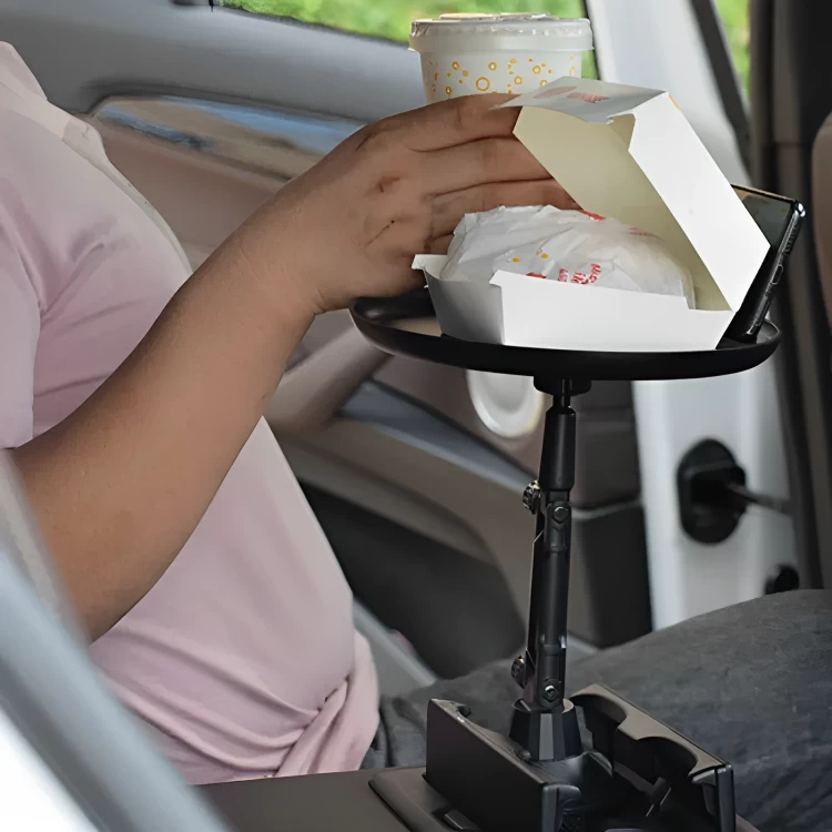 حوّل حامل الأكواب في سيارتك إلى طاولة صغيرة لتناول الطعام أو العمل أثناء التنقل. تصميم عملي يوفر لك مساحة إضافية داخل السيارة!