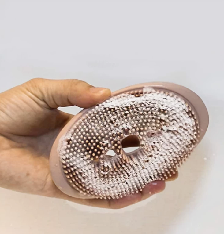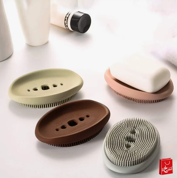 يتميز طبق الصابون للاستحمام بفرشاة سيليكون متينة مصنوعة من مادة سيليكون ناعمة وآمنة وتصميم غير قابل للانزلاق ينظف بشرتك ولن ينزلق