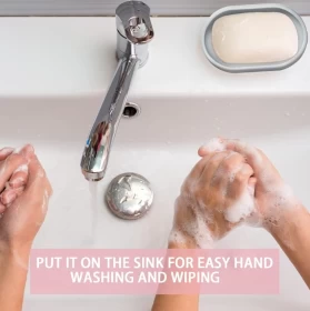 • يمكن لصينية الصابون للحمام أن تحتوي على قطع الصابون والإسفنج والمقشرات وفرش الأطباق وبعض الحرف اليدوية وما إلى ذلك، مثالية للحمام والمنزل.