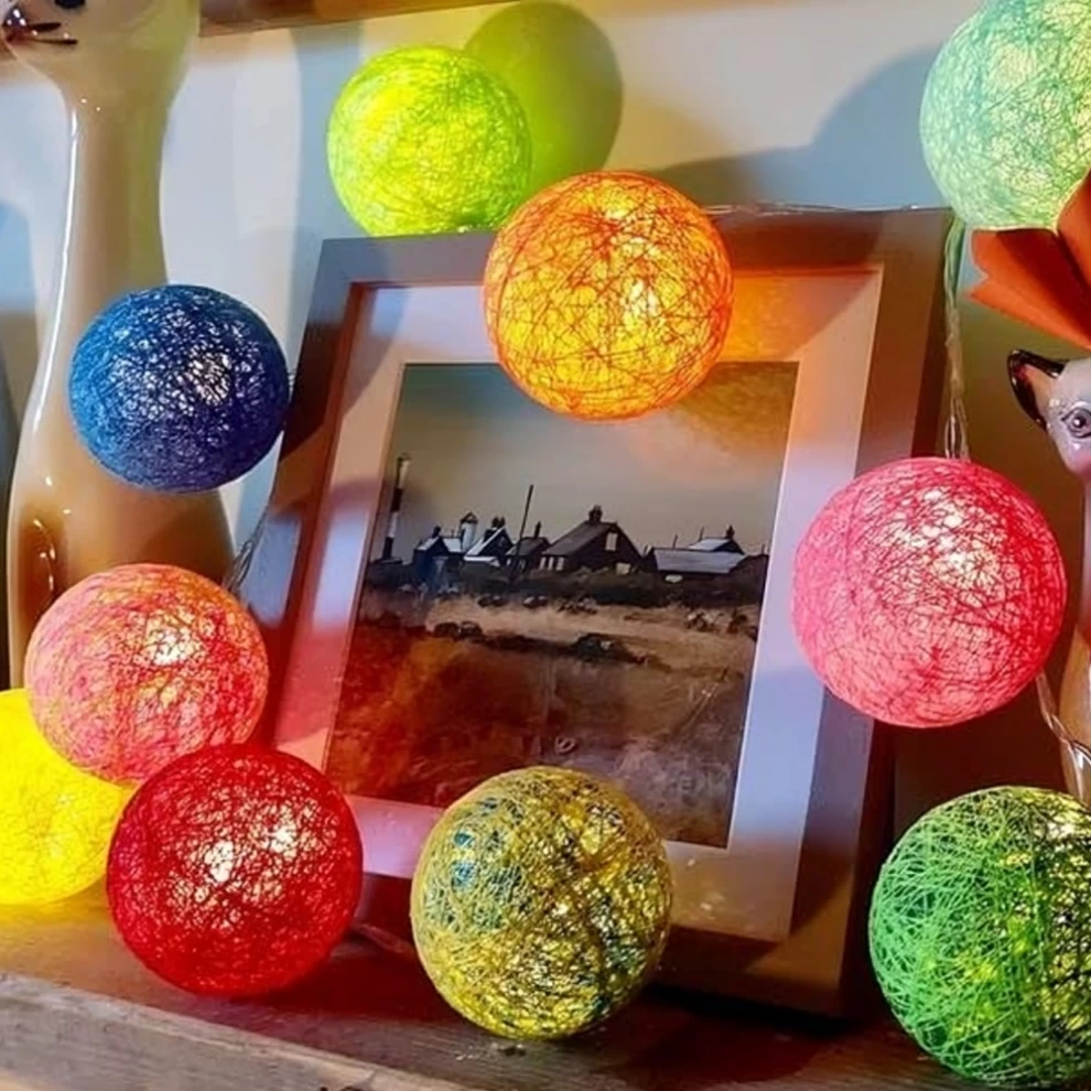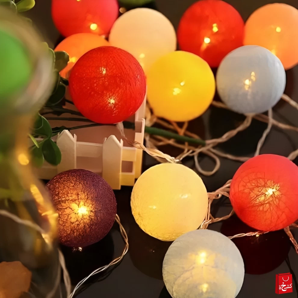 شريط زينة شكل كرات ملونة مضيئة تشتغل على البطارية