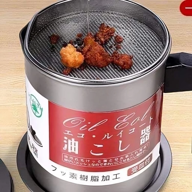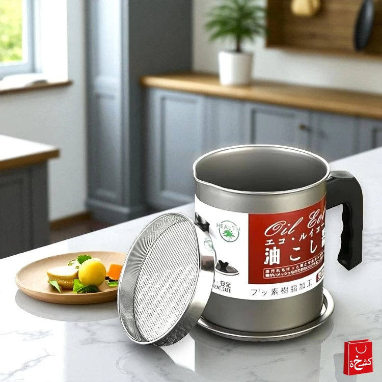 احفظ زيتك المستخدم بطريقة صحية ومنظمة! يحتوي على مصفاة دقيقة لفصل بقايا الطعام ويضمن بقاء الزيت نظيفًا وجاهزًا لإعادة الاستخدام.