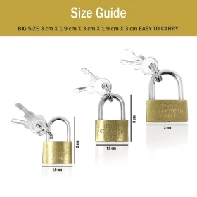 مجموعة من 3 قفل معدني صغير صندوق صغير نحاسي صغير 3 قفل 2 مفتاح