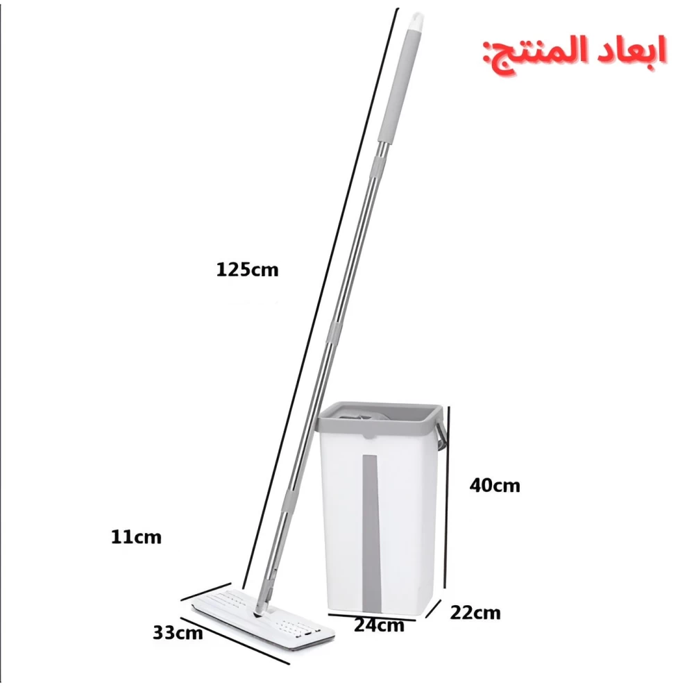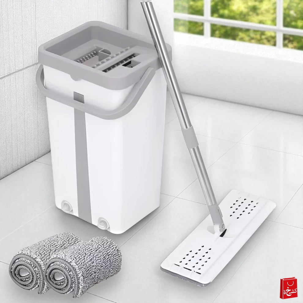 ممسحة احترافية مسطحة مع دلو عصري بعصر ذاتي تجعل أعمال التنظيف أسرع وأسهل وأكثر نظافة. مثالية للمنازل المزدحمة، المكاتب، ولكل من يريد أرضيات لامعة بدون انحناء أو فوضى أو أيدي مبللة.