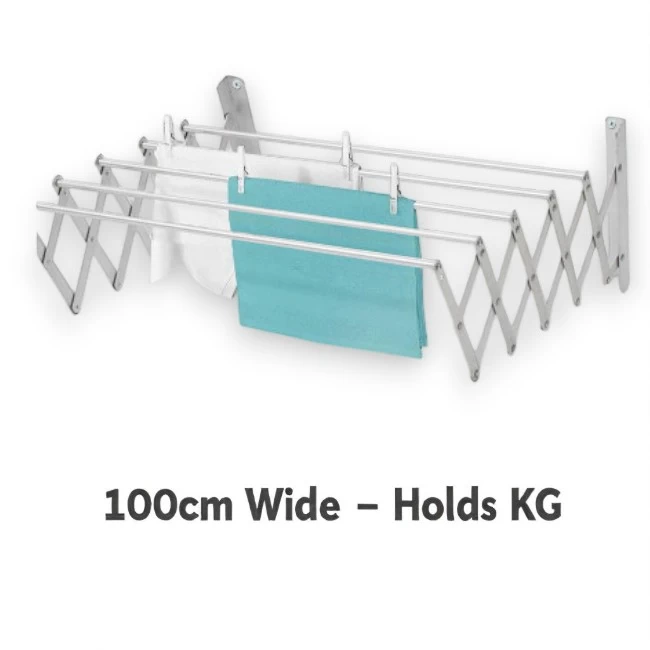 منشفة تجفيف ملابس قابلة للطي تُثبت على الحائط – 5 أعمدة – 100 سم