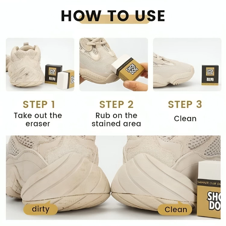 تنظيف فوري وسهل – فقط افرك الممحاة على سطح الحذاء لإزالة البقع.
