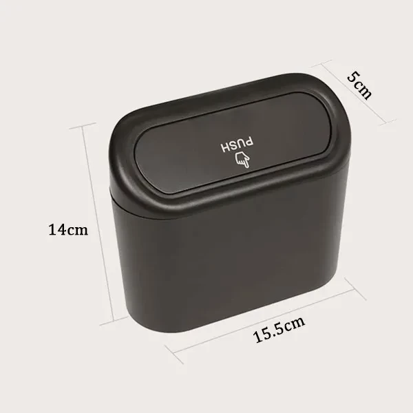 احرص على نظافة سيارتك وخلوها من الفوضى مع سلة المهملات الصغيرة للسيارة. تصميمها المدمج والعصري مع غطاء يُفتح بالضغط يجعلها مثالية للتخلص السريع من النفايات داخل السيارة. مصنوعة من مادة ABS المتينة، سهلة التركيب والتنظيف، وتتناسب مع جميع ديكورات السيارات. مناسبة للمناديل، الإيصالات، أو بقايا الطعام الصغيرة – اضغط وألقِ!
