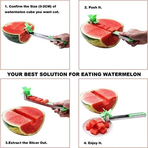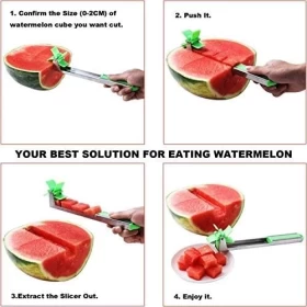 • تساعدك على تقطيع البطيخ بحجم متساوٍ. حتى المبتدئين يمكنهم تقطيعه بشكل جميل للحصول على ترتيب مثالي للفاكهة.