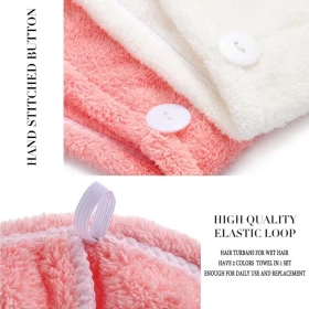 • منشفة شعر مع زر مناسبة لأي نوع من أنواع الشعر، تناسب تمامًا أي رأس. يمكنك حمل مناشف الشعر هذه في أي مكان تذهب إليه. مثالية للصالات الرياضية والسفر والرياضة واليوغا والتخييم والمنزل والفنادق وحفلات حمام السباحة وصالونات الشعر وما إلى ذلك.