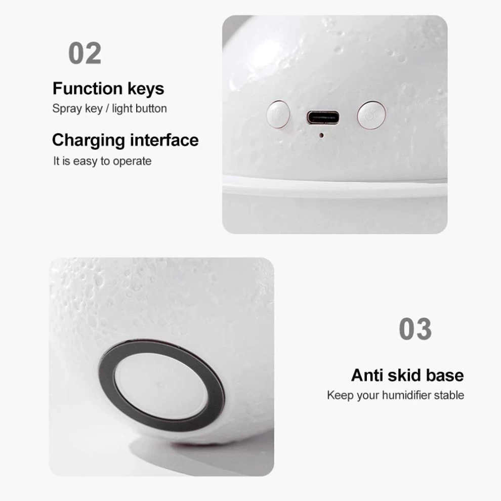 فواحه هواء USB بمصباح قمري ثلاثي الأبعاد