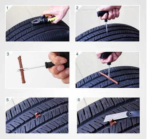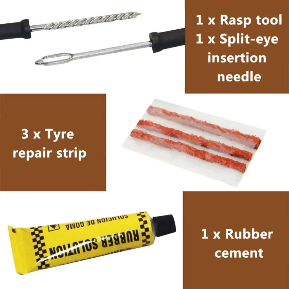 ·    تتمثل محتويات ومكونات هذا الطقم في بعض العدد اليدوية التي يتم استخدامها في إصلاح بنشر الكفرات؛ وهي عبارة عن فتيلة وإبرة ومخرز.