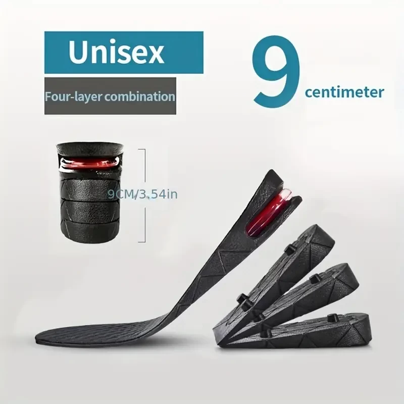 زيادة الطول بشكل غير مرئي من 3 سم إلى 9 سم، مع تخفيف الضغط على الركب والكعب والكاحل – مثالية لمن يعاني من فرق في طول القدمين أو يبحث عن راحة وثقة أكثر أثناء المشي أو الوقوف.