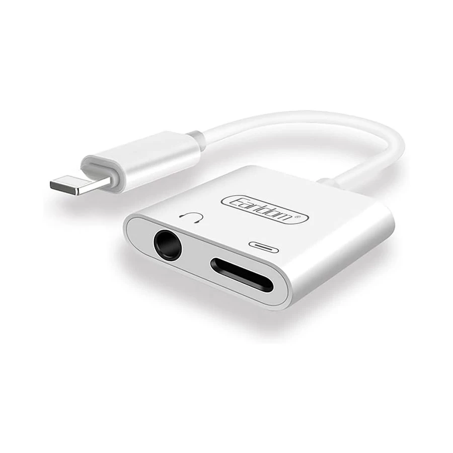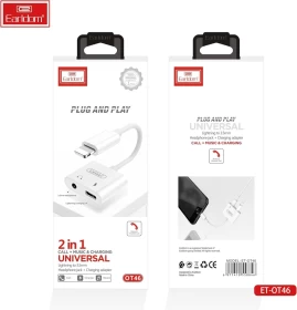 محول Lightning 2 في 1 من Earldom بمنفذ Lightning واحد ومنفذ 3.5 مم مع ميكروفون، أصلي - أبيض OT46