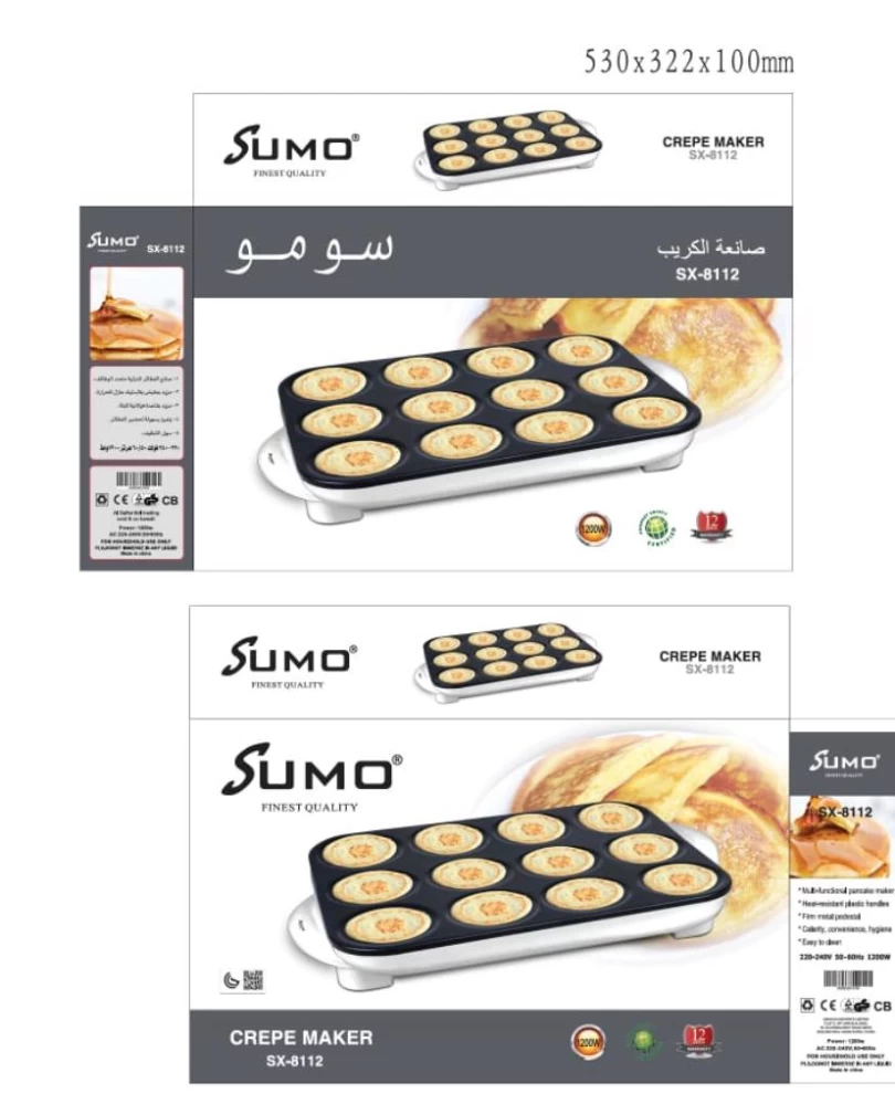 صانعة الكريب الكهربائية بقوة 1200 واط من سومو -12 قالب