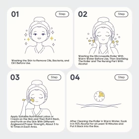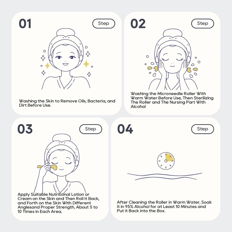 3️⃣ مرري الديرما رولر بلطف على البشرة 5 مرات في كل اتجاه (أفقي، عمودي، قطري)