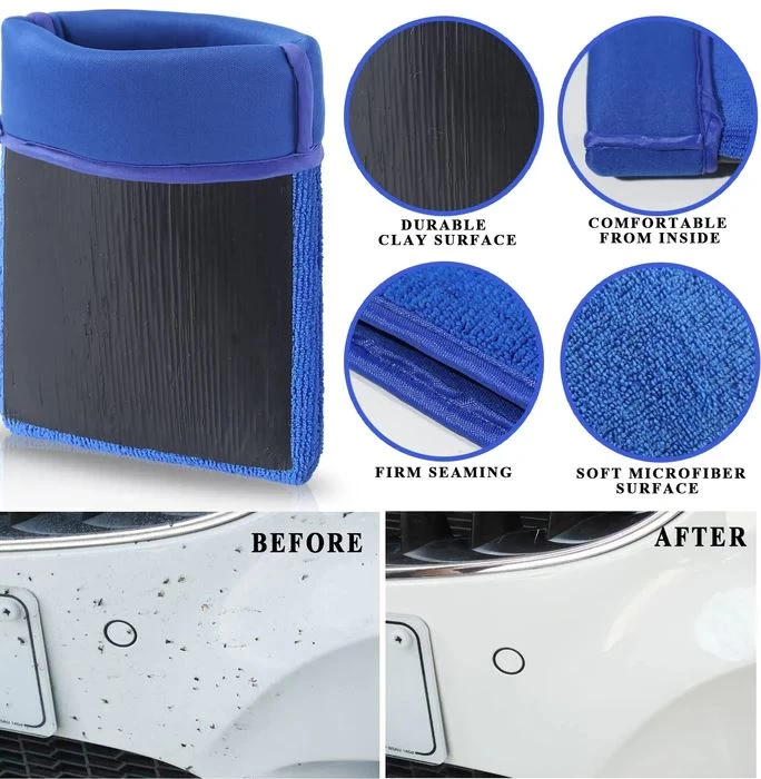 قفاز طيني للتنظيف العميق – يزيل الأوساخ العالقة، وبقع الأمطار، والأكسدة، وبقايا الحشرات، والندى الحمضي، والشوائب المعدنية. فقط بلّل القفاز وامسح للحصول على لمعان مثالي.