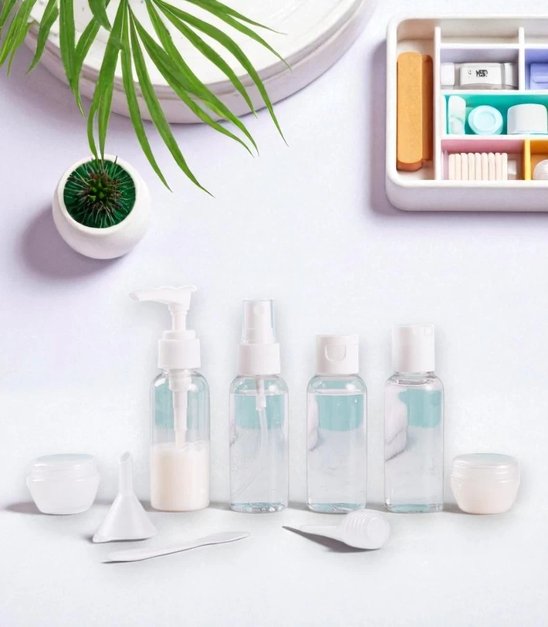 🧴 طقم عبوات السفر الشخصية 8 قطع – مدمج، مقاوم للتسرب ومعتمد للطائرات