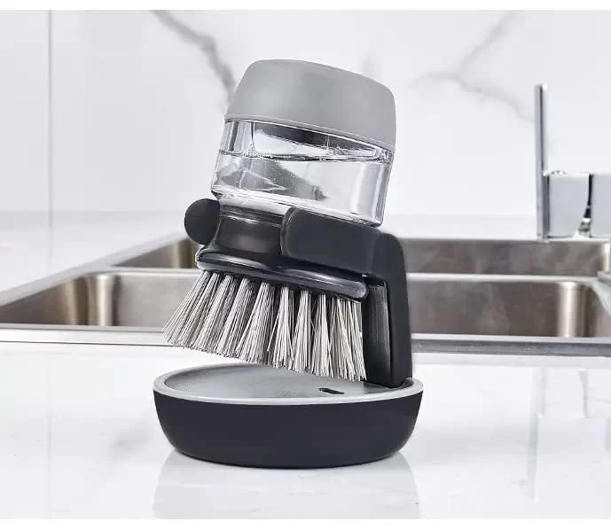 فرشاة تنظيف بلاستيكية مع موزع صابون لحوض المطبخ