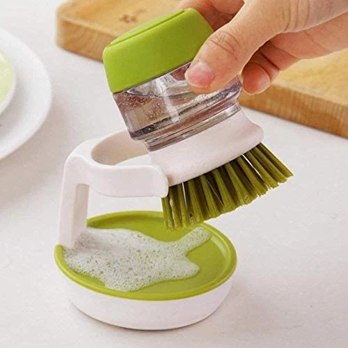 🧼 فرشاة تنظيف بلاستيكية مع موزع صابون – للمطبخ والمغسلة