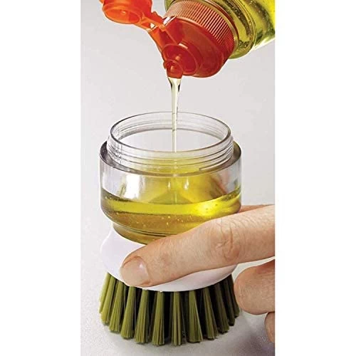 اجعل التنظيف أكثر سهولة! فرشاة عملية تحتوي على خزان صابون مدمج لتوفير الوقت والجهد في غسل الصحون وتنظيف الأسطح.