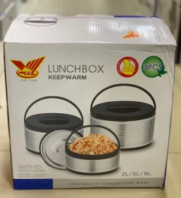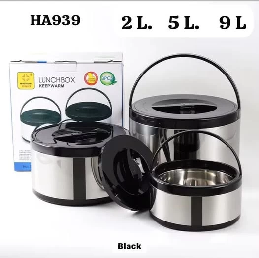 حافظ على وجباتك ساخنة وطازجة لساعات مع مجموعة حافظات الطعام المعزولة "لانش بوكس كي وورم" المكونة من 3 قطع! 🏆🔥 صُممت هذه الحافظات المصنوعة من الفولاذ المقاوم للصدأ بعزل عالي الجودة، وهي مثالية للمنزل، والسفر، والمكتب، والنزهات، وتجهيزات الطعام. متوفرة بسعات 2 لتر، و5 لتر، و9 لتر، لتضمن لك تخزين وجباتك الصغيرة والكبيرة بكل سهولة وأناقة. 🍲✅