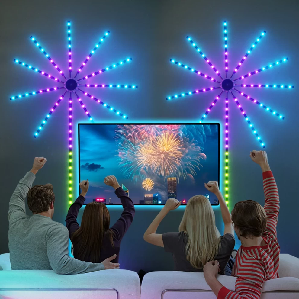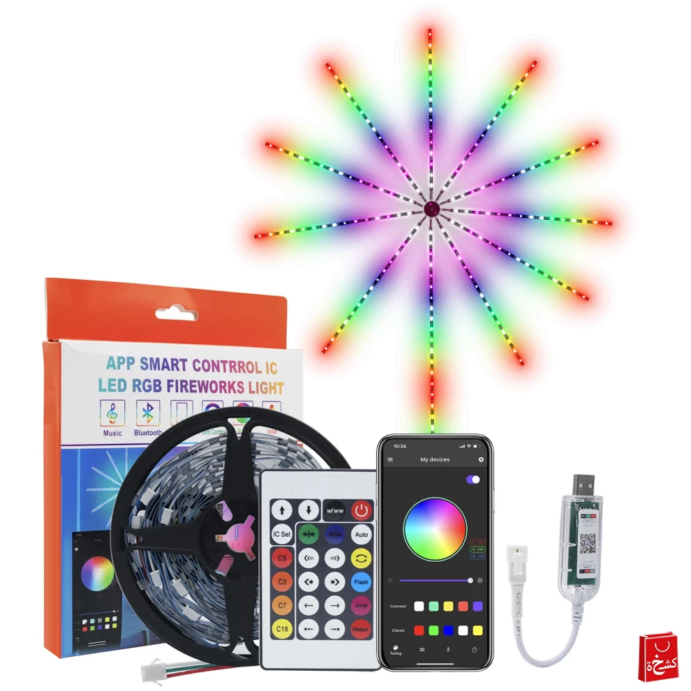 • تصميم فريد: شريط إضاءة LED على شكل ألعاب نارية، يضفي لمسة جمالية على أي مكان.