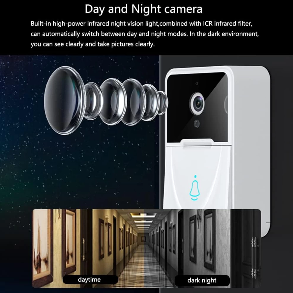 جرس باب ذكي لاسلكي بكاميرا، رؤية ليلية، صوت ثنائي الاتجاه وتحكم عبر التطبيق