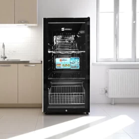 احتفظ بمشروباتك باردة وجاهزة مع هذا المبرد الأنيق والموفر للطاقة بسعة 109 لتر. مثالي لحفظ العصائر، المياه، والمشروبات الغازية سواء في المنزل أو المكتب أو الكافيهات والمحلات. تصميمه الزجاجي الأنيق مع قفل أمان يجعله عملي وآمن، وبدون فريزر، فهو مخصص فقط للتبريد السريع والفعال.