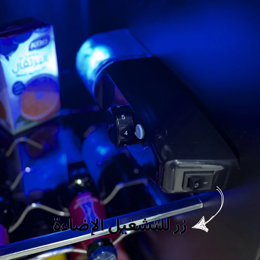• 💡 إضاءة LED زرقاء قابلة للتشغيل والإيقاف – مثالية للأماكن الهادئة أو في الليل