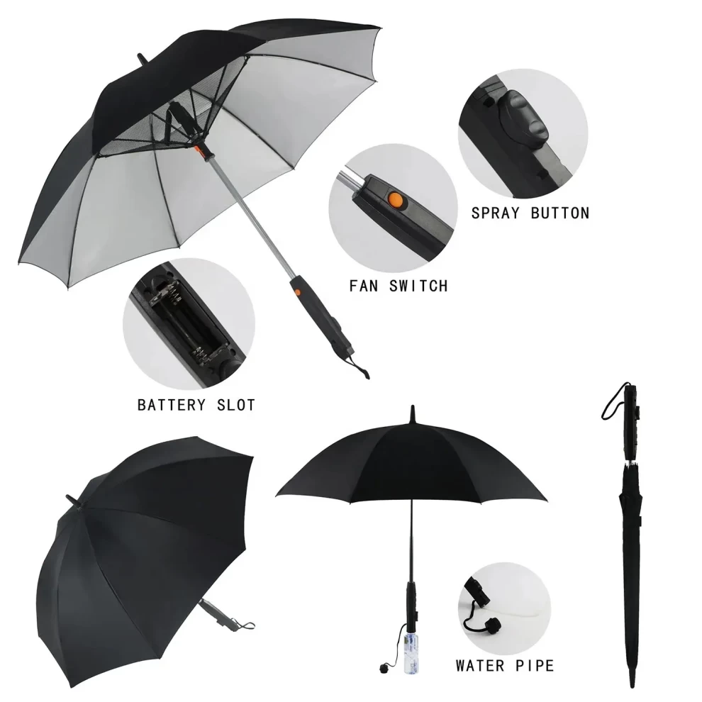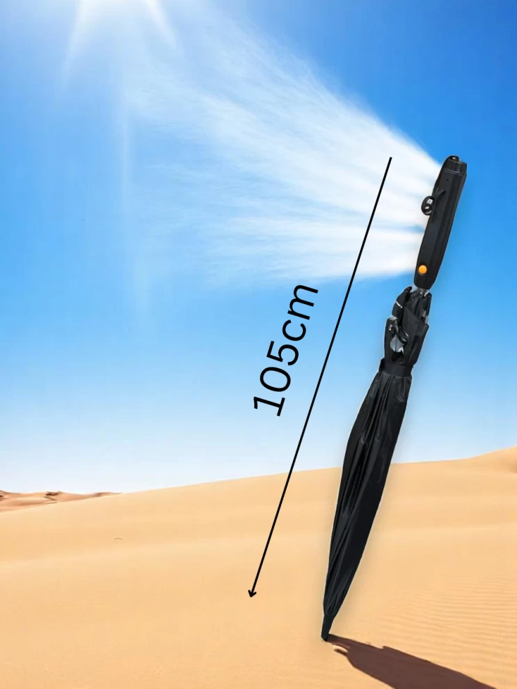 • ✅ 1 × مظلة تعمل بالبطارية مع مروحة ورذاذ